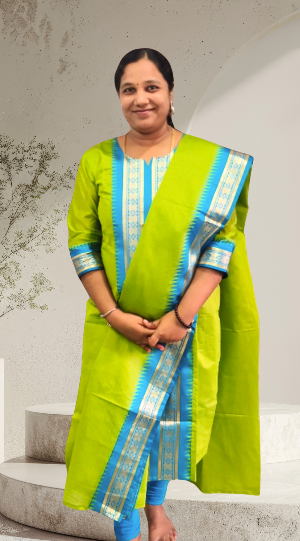 Parrot Green shade Pure Silk Cotton Kurti with Matching Dupatta