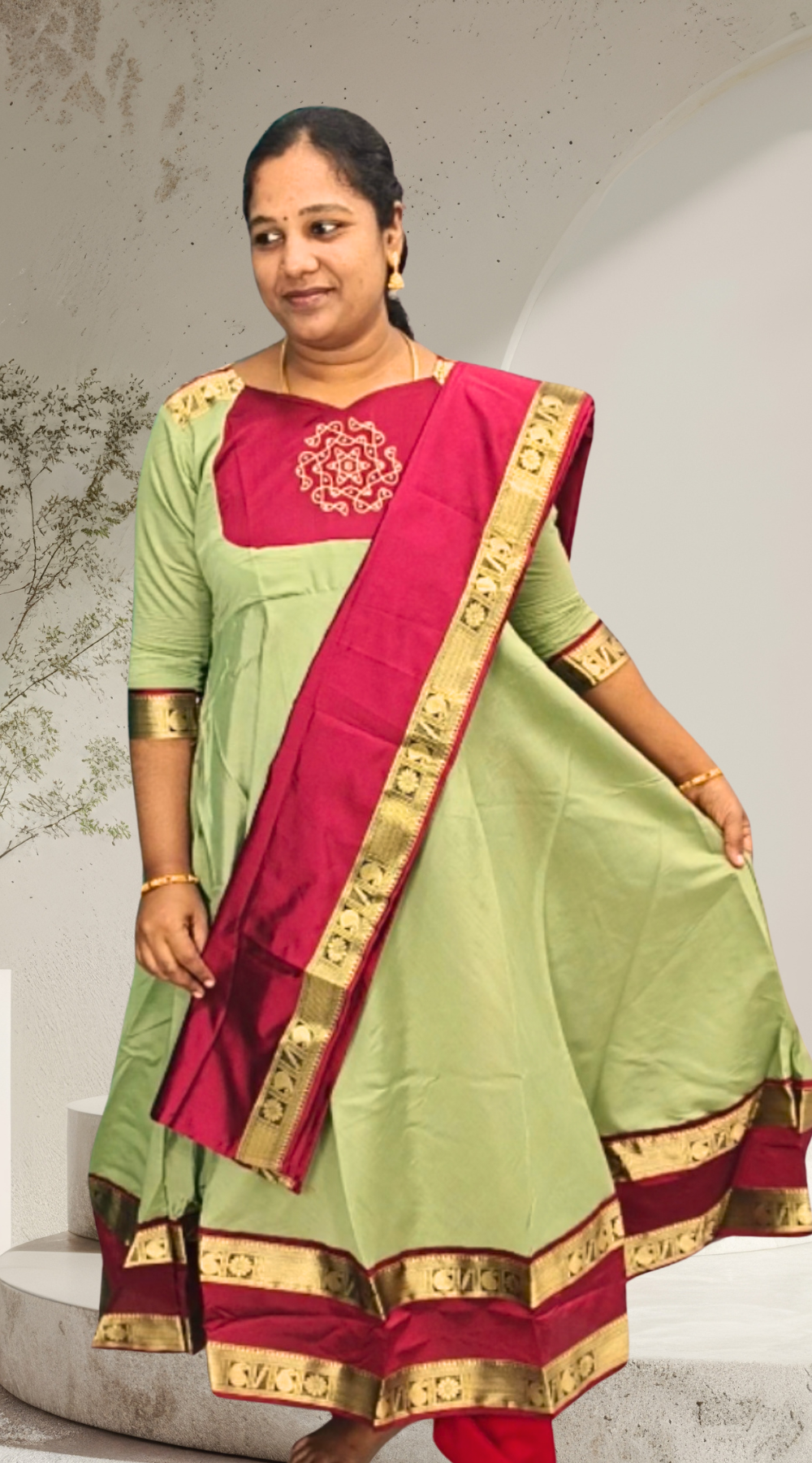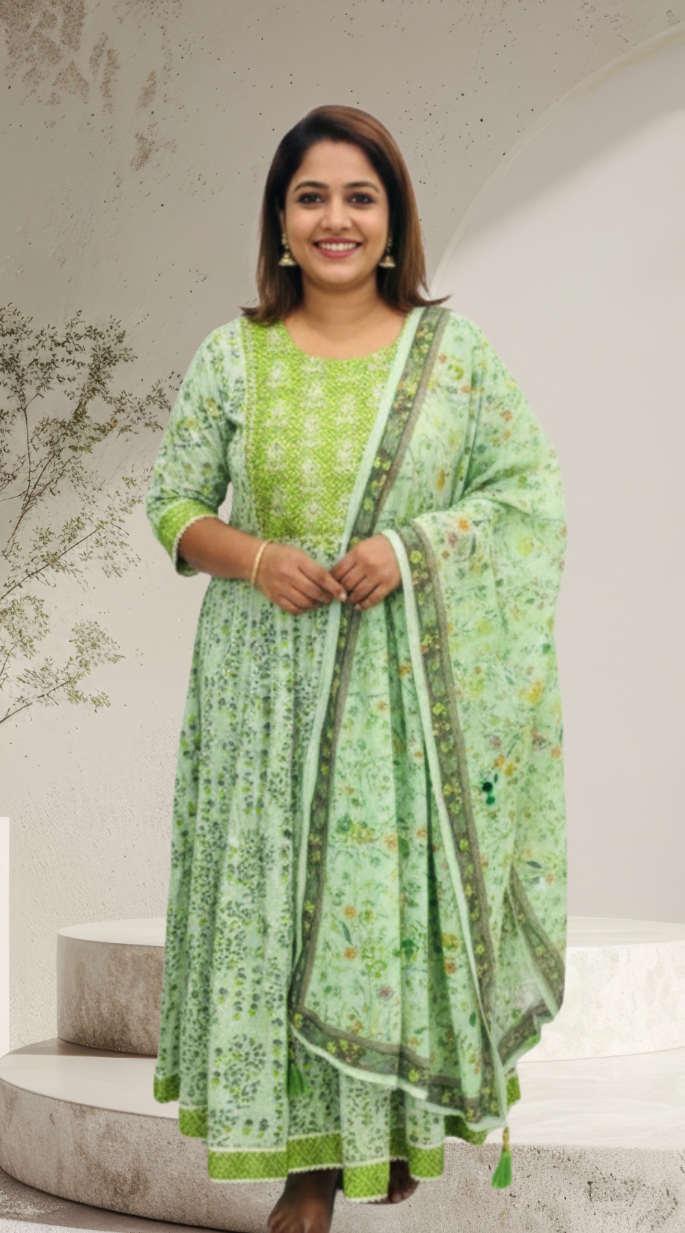 Leaf Green Premium Silk Anarkali Kurti Set with Matching Dupatta