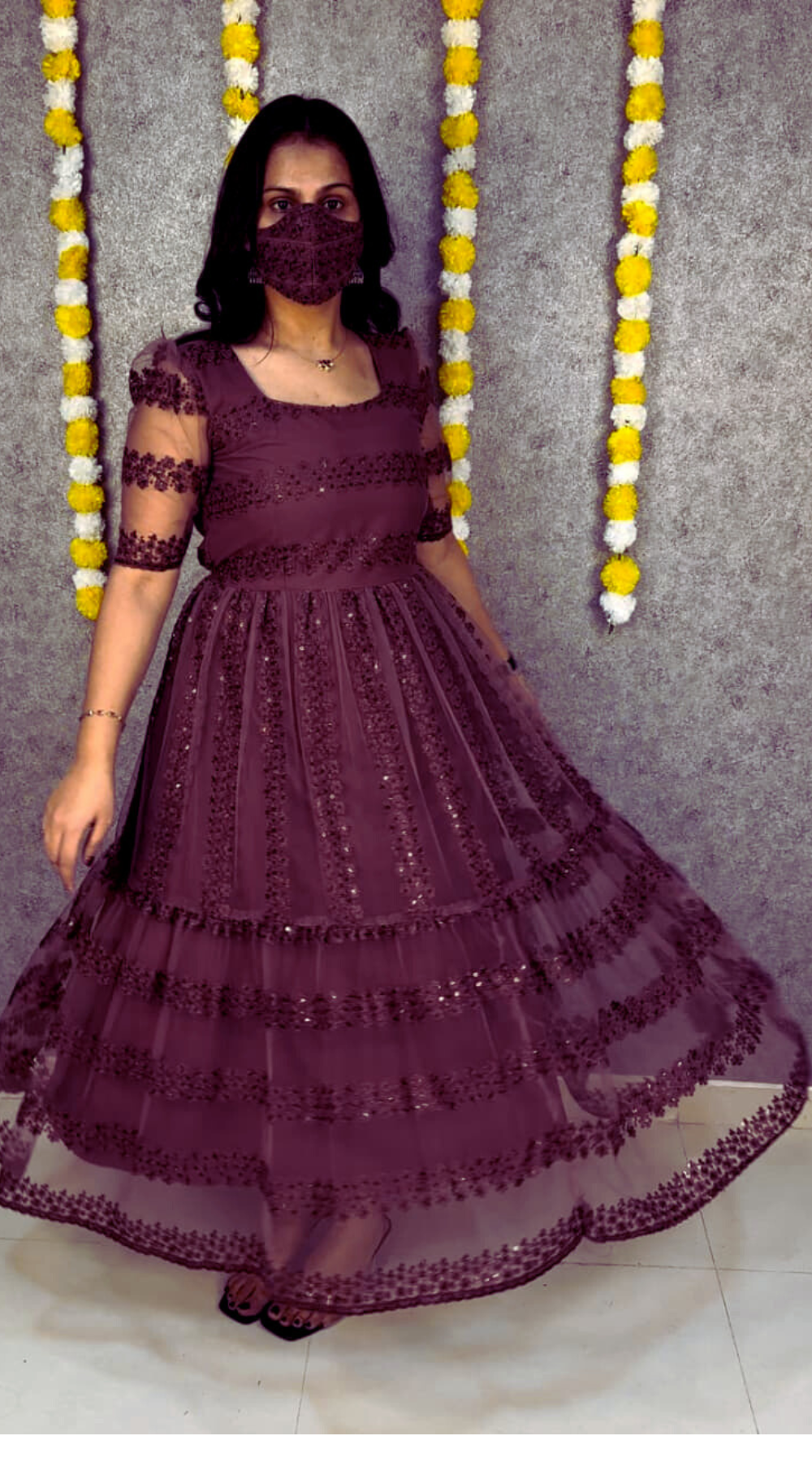 Comes with a full heavy crepe lining, making it soft on the skin, breathable, and ideal for long hours of wear. The adjustable hip knots ensure a perfect and comfortable fit for all body types. Available in sizes S to 5XL, this frock promises both beauty and confidence.