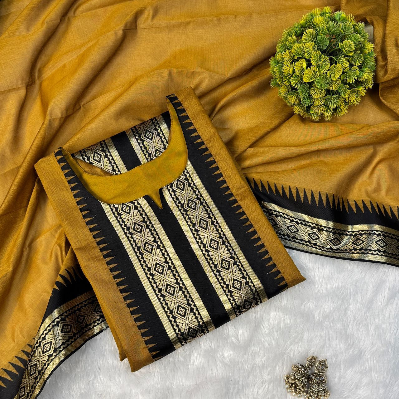 Golden shade Pure Silk Cotton Kurti with Matching Dupatta